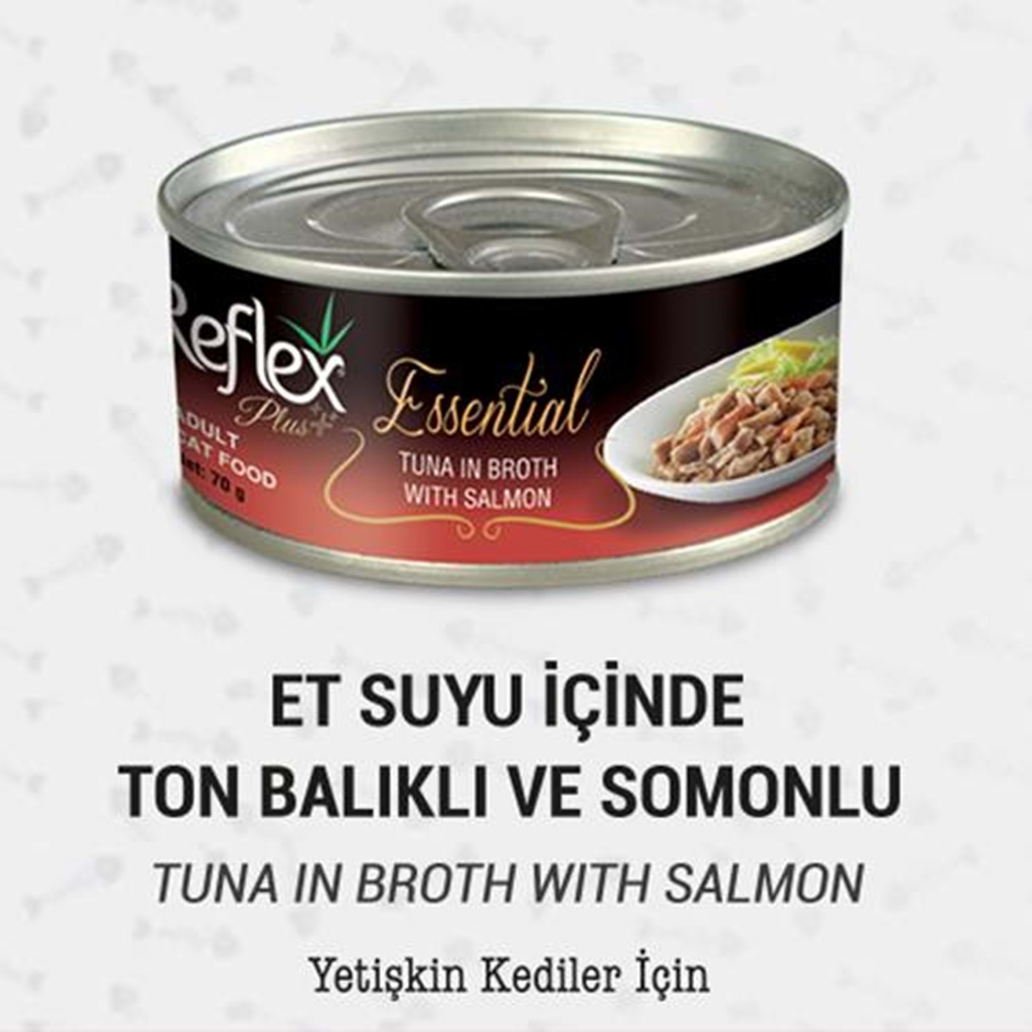 REFLEX ESSENTİAL ET SUYU İÇİNDE TON BALIKLI VE SOMONLU KEDİ KONSERVESİ 70 G Kedilerin günlük besin maddesi ihtiyaçları göz önünde bulundurularak üretilmiştir. Kaliteli içerikler ile son teknolojik imkanlarla üretilmiştir. İçindekiler: Ton Balığı(%74.28), Somon (%2.86), Pirinç (%1.43) ve Ton Balığı Özü.. Analiz Raporu: Ham Protein %20, Ham Yağ min. %0,3, Ham Lif max. %1, Nem İçeriği %80, Ham Kül max. %3 Katkılar/kg: Vitamin E 10mg Günlük Besleme Miktarı 1-3 kg kedi ağırlığı için ½ kutu 3-5 kg kedi ağırlığı için 1 kutu 5-7 kg kedi ağırlığı için 1+ ½ kutu