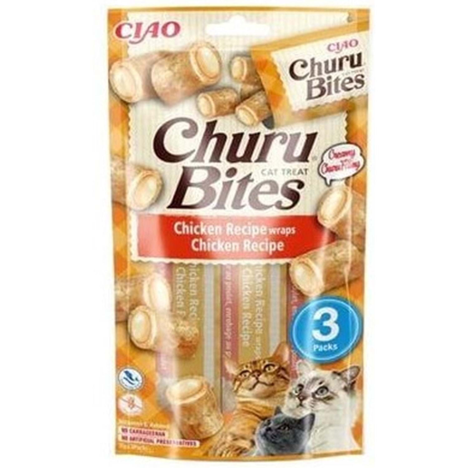 Churu Bites Tavuk Sargılı Kedi Ödül Maması 3x10 GR. Churu Bites Tavuk Sargılı Kedi Ödül Maması Kediler İçin Tamamlayıcı Yem Besleme Talimatları: Direkt olarak tüpten veya mama kabına koyarak servis ediniz. Paketi açtıktan sonra soğuk yerde muhafaza ediniz. Mümkün olan en kısa sürede tüketilmesi önerilir. İnsan tüketimi için uygun değildir. Yanında her zaman temiz su bulundurunuz. Dikkat: Kedinin ambalaj malzemesini çiğnemesine veya yutmasına izin vermeyin. Elle beslerken ekstra özen gösterin. Malzemeler: Tavuk (%59.1), Ton Balığı (%16.3), Tapyoka (kurutulmuş), Yumurta Beyazı Tozu, Sodyum Kazeinat, Tavuk Özü, Maya, Yeşil Çay Özü. Kg Başına Katkı Maddeleri: Teknolojik Katkı Maddeleri: Guar Sakızı (E412) 6.3 g. Duyusal Katkı Maddeleri: Tatlandırıcılar. Renklendiriciler: 2, b, Doğal Ürünler-Botanik olarak Tanımlanmış, Kırmızı biber oleoresin 0.1 g. Besin Katkı Maddeleri: E vitamini 121 mg. Analitik Bileşenler: Ham Protein % 28, Ham Yağ % 5, Ham Lif % 0.3, Ham Kül % 1.8, Nem % 63.0 Enerji: 1500kcal/kg Son Kullanım Tarihi, Kullanım Talimatı ve Parti Numarası Paketin Üzerindedir. Net Ağırlık: 30 g. (3x10g.)