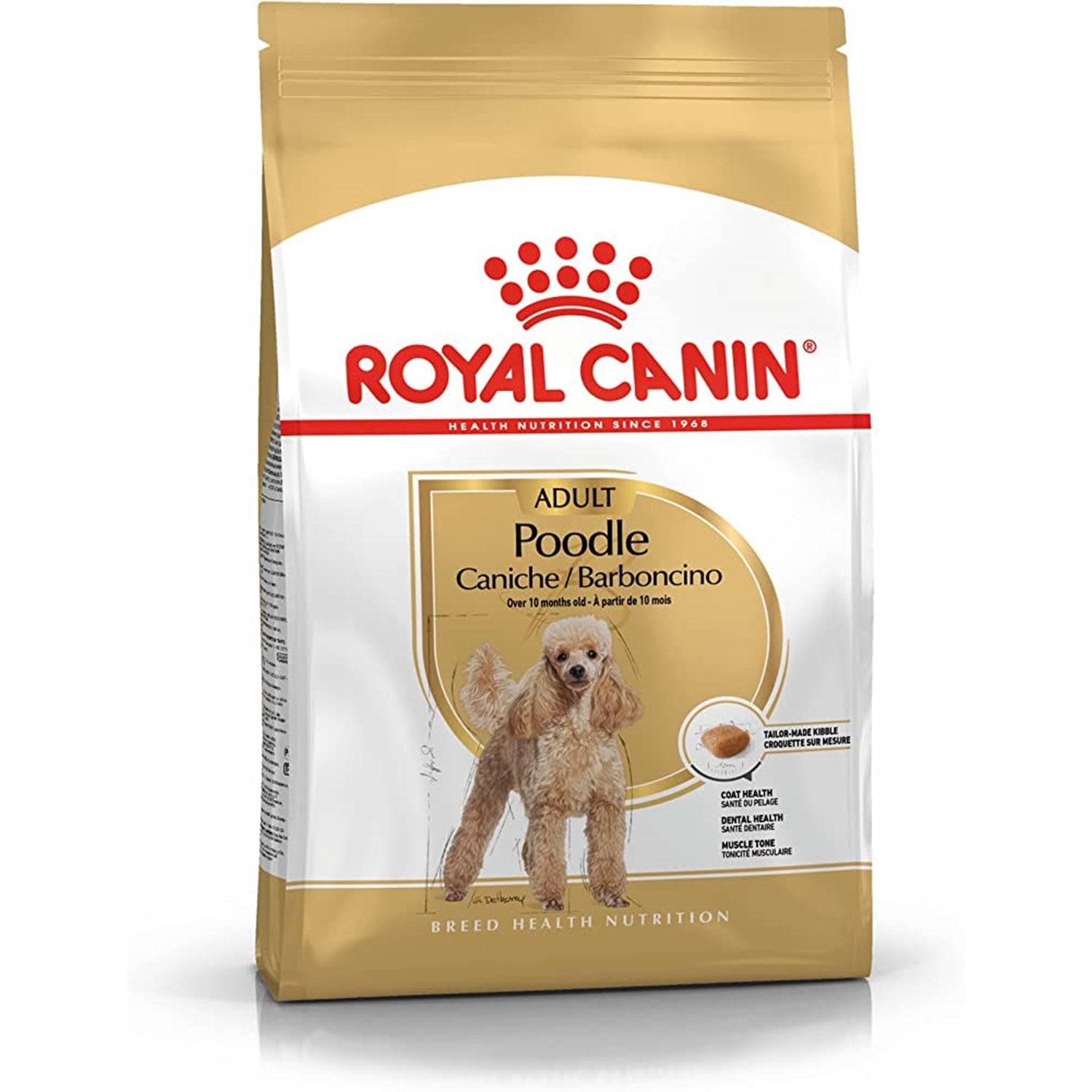 Royal Canin Poodle Yetişkin Köpek Maması 3kg Poodle ırk köpekler için özel olarak üretilmiştir. Tüylerinin kıvırcık formunun ve sağlığının korunmasına yardımcı olur. Dişlerde oluşan tartar oluşumunu engeller, diş sağlığına katkı sağlar. Kas ve kemik yapısını destekler. Mamanın şekli, büyüklüğü ve yapısı Poodle ırkı köpekler için formüle edilmiştir. Analiz Raporu Ham Protein %30 Ham Yağ %19 Ham Kül %5.5 Ham Lif %2.1 İçerik Mısır Kurutulmuş Kümes Hayvanları Proteinleri Bitkisel Protein İzolat Hayvansal Yağlar Pirinç Mısır Unu Mısır Gluten Hidrolize Hayvansal Proteinler Pancar Küspesi Mineraller Soya Yağı Balık Yağı Mayalar Ve İlgili Parçalar Bitkisel Lifler Frukto-Oligo-Sakkaritler Hodan Yağı %1 Hidrolize Edilmiş Kabuklu Hayvanlar (Glukozamin Kaynağı) Kadife Çiçeği Özü (Lutein Kaynağı) Besin Katkı Maddeleri Vitamin A 29500 IU Vitamin D3 800 IU Demir 40 mg İyot 4 mg Bakır 12mg Manganez 52 mg Çinko 139 mg Selenyum 0,08 mg Çay özğ: 150 mg Teknolojik İlaveler Sedimanter Kökenli Klinoptilolit: 5 g