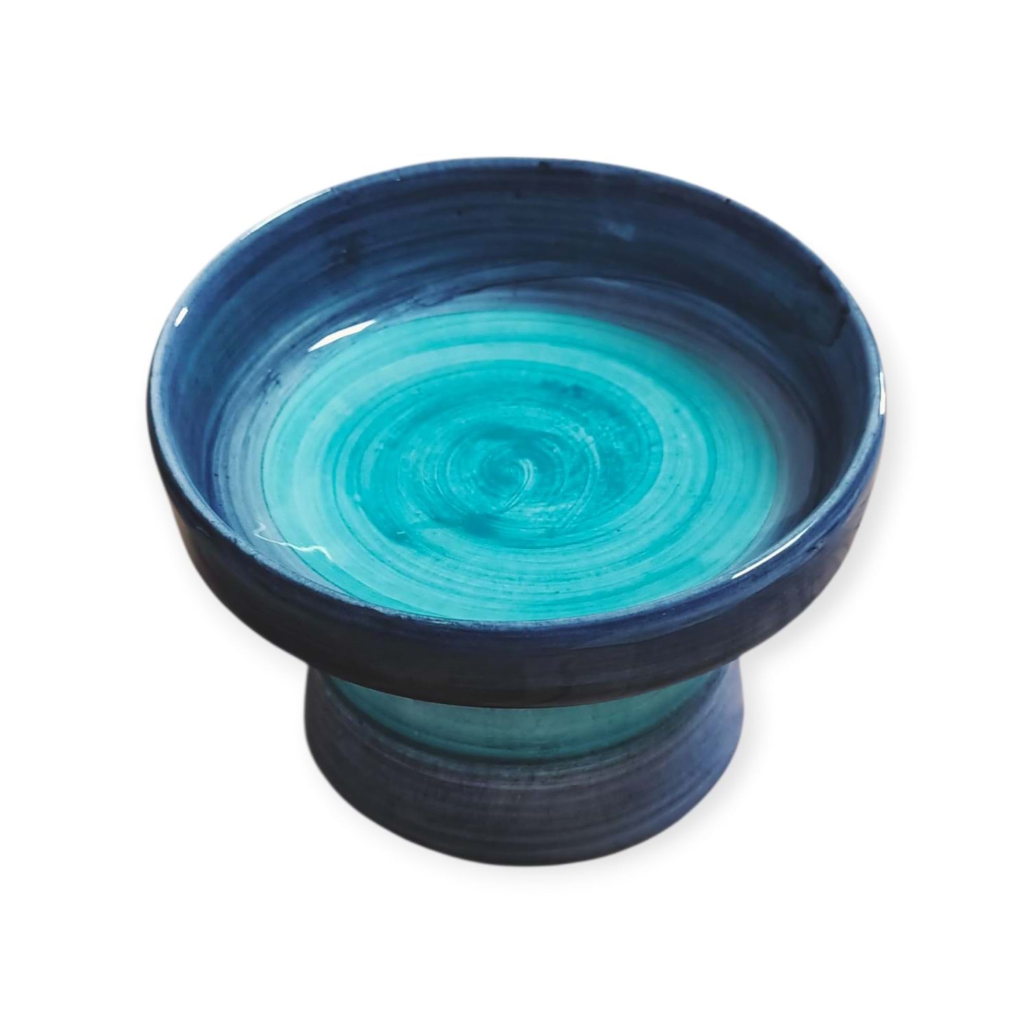 Fırça İzli Ayaklı Seramik Mama ve Su Kabı Mavi