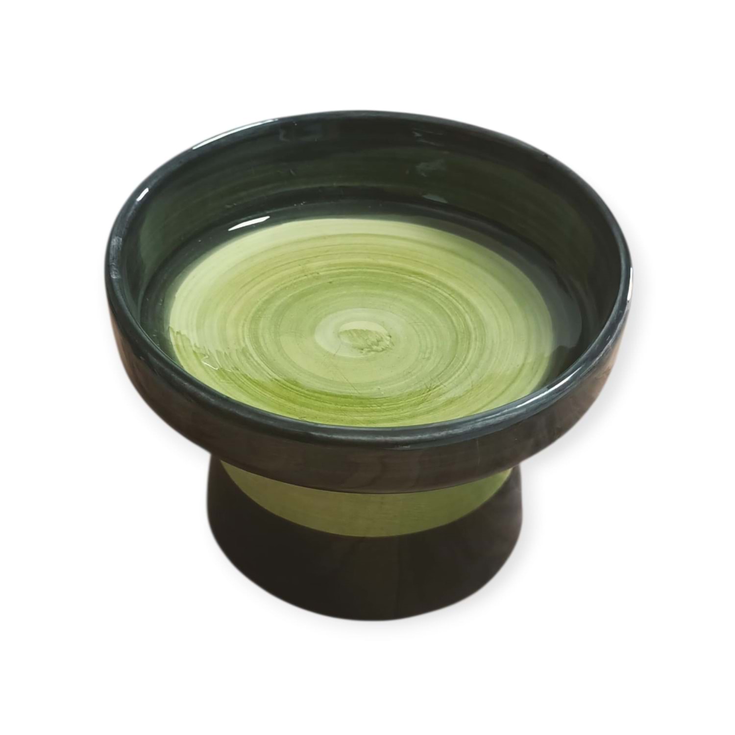 Fırça İzli Ayaklı Seramik Mama ve Su Kabı Yeşil